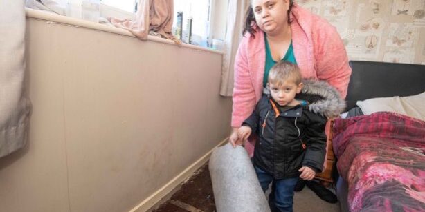 A young mum and her two children are having to ‘live in their coats and dressing gowns inside a freezing cold and damp’ Birmingham flat.
